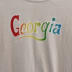 VTG Single Stitch Sun Specs Brand Biege Georgia T Shirt Rainbow Letters