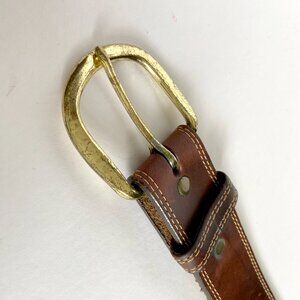 VTG Size 36 Alcala Boho Western Brown Leather Belt Embossed - White Stitching