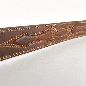 VTG Size 36 Alcala Boho Western Brown Leather Belt Embossed - White Stitching - 55607