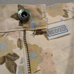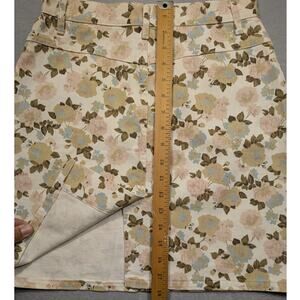 Step back in time with this adorable vintage floral printed Skoozi denim skirt! High waisted and is made from 100% cotton. Zip front with button closure and small slit in back. 5 pockets.
