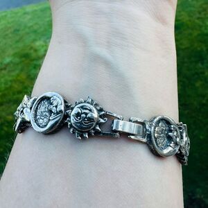 VTG Slide Time Silver Tone Celestial Sun Moon Stars Charm Watch
