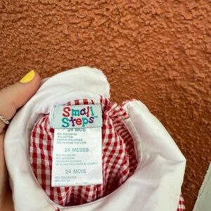 VTG Small Steps 24 Months Baby Girl Romper One Piece Red White Gingham Butterfly