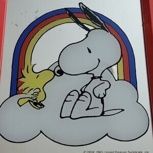 Vintage Snoopy Woodstock Kissing Rainbow Cloud Mirror Framed Peanuts 1958 1965