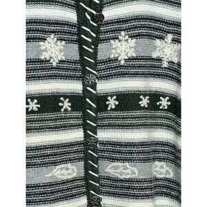 VTG Snowflake Winter Knit Button Fall Holiday Green Cardigan Hand Embroidered Sm