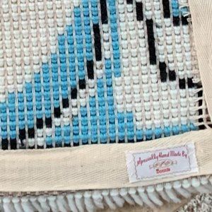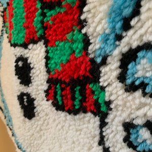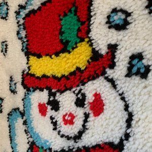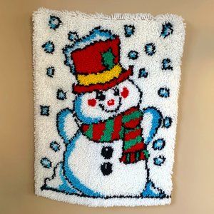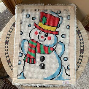 VTG Snowman Latch Hooked Rug Wall Hanging Christmas Hand Crafted 70s Boho