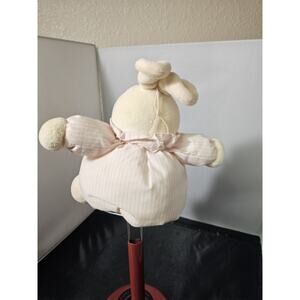 VTG Soft Dreams Sewn Pink White Bunny Rabbit Plush Ruffle Collar Rattle Beanie