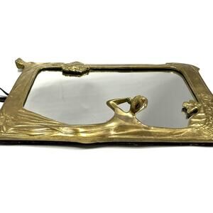 Vintage Solid Brass Art Nouveau VANITY MIRROR 3D Lady In Gown Dresser Table Decor.