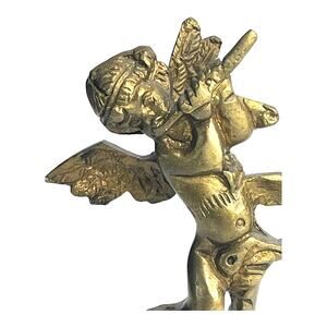 Vintage Solid Brass CHERUB FIGURINE 6" Angel Plays Flute Paradigm Pedestal Boy Child - NEW Condition!