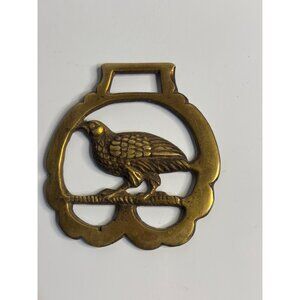 Vintage solid brass horse brass medallion featuring a detailed grouse or game bird design. Traditionally used on martingales and harness tack, this collectible piece adds rustic country charm and equestrian appeal to any wall or tack room décor.