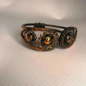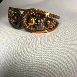 VTG Solid Copper heavy Weave Design Hinge etched Bangle Bracelet Basket Weave