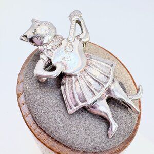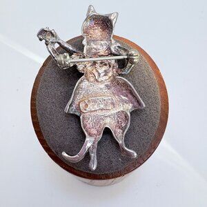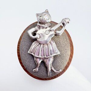 VTG Solid Sterling Silver 925 Cat Playing Guitar Brooch