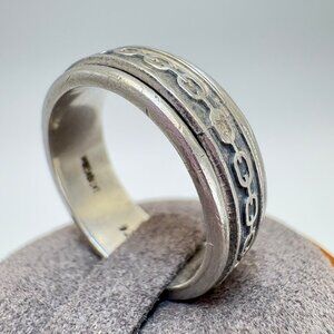 VTG Solid Sterling Silver 925 Chain Oval Link Textured Band Ring
