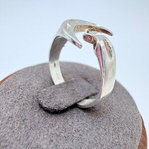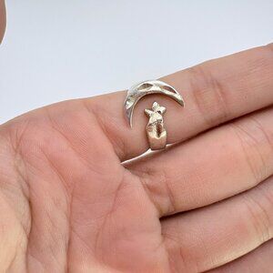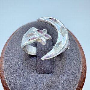 VTG Solid Sterling Silver 925 Crescent Moon & Star Open Band Ring