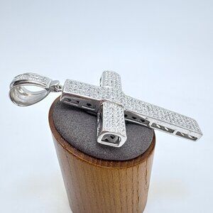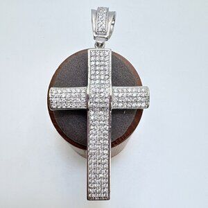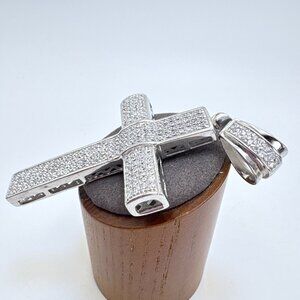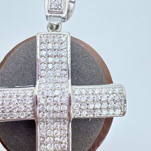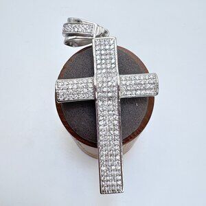 VTG Solid Sterling Silver 925 Cubic Zirconia Cross Pendant Size 3.5" Length