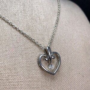 VTG Solid Sterling Silver 925 Cubic Zirconia Heart Pendant Necklace Size 18''