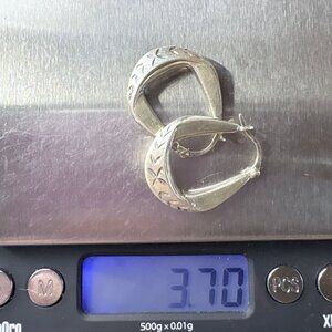 VTG Solid Sterling Silver 925 Etched Puffed Hoop Earrings
