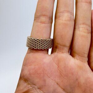 VTG Solid Sterling Silver 925 Mesh Link Interwoven Flexible Band Ring Size 9