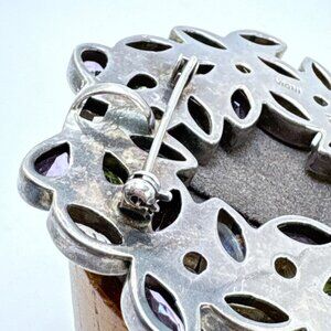 VTG Solid Sterling Silver 925 Multi-Gemstone Circle Brooch