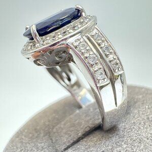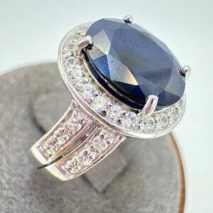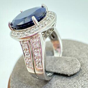 VTG Solid Sterling Silver 925 Synthetic Sapphire Prong Set Statement Ring
