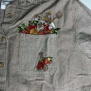 VTG Solutions Original Gingham Plaid Button Down Fall Embroidered Top Size Large.