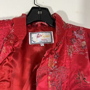 VTG Solz Squirrel Chinese Long Robe Dress Jacket Red Embroidered Pockets L Satin