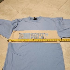 VTG South Pole Mens XL Embroidered Spellout Blue Long Sleeve T Shirt Streetwear