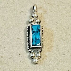 VTG Southwest Sterling Silver Pendant Cruchet Turquoise Signed