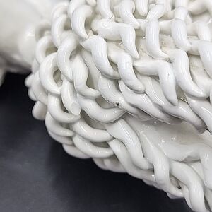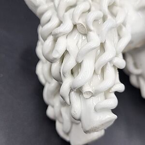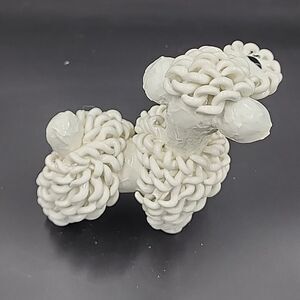 Hand-painted with a glazed finish, this figurine features a raised relief and a textured pattern that makes it a unique addition to any room. Measuring 4 inches in length, 5 inches in height, and 3 inches in width, this figurine is perfect for small spaces and can be placed on any tabletop or shelf. The piece is a true mid-20th-century Italian artifact, manufactured in the 1950s. It is a perfect gift for all occasions, whether it's for a teen or an adult. The poodle's white color and small size make it a versatile decorative item that can complement any style. This original piece is a must-have for collectors of animal-themed decorative collectibles.