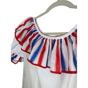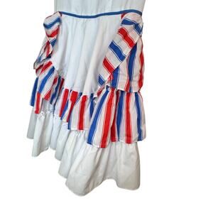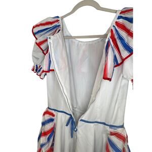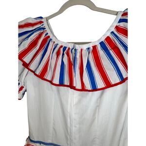 VTG Spanish Flamenco Dress Red White Blue Striped Ruffle Heritage Puerto Rico S