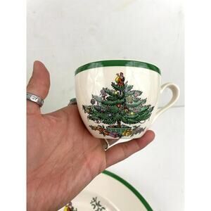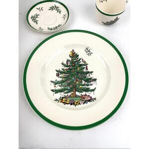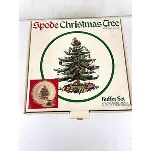 VTG Spode Christmas Tree Buffet Set Dinner Plate Cup Saucer 3 PC Set BOXED