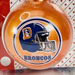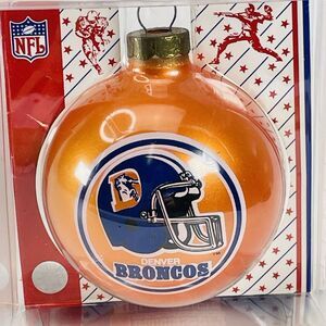 VINTAGE, NFL, DENVER BRONCOS, CHRISTMAS ORNAMENT, GLASS ORNAMENT, ORANGE HELMET, LOGO, SPORTS COLLECTOR SERIES, FOOTBALL ORNAMENT, COLLECTIBLE, TEAM PRIDE, FOOTBALL FAN, AS NEW IN PACKAGE,