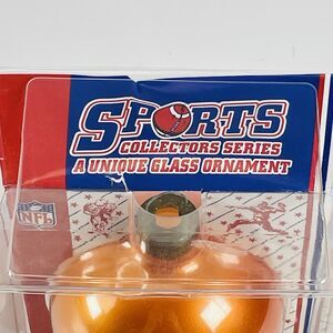 Celebrate your team pride with this fantastic vintage Sports Collector Series NFL Denver Broncos ornament! This glass ornament features the iconic Denver Broncos logo on an orange helmet, making it a perfect piece for any dedicated fan or collector.