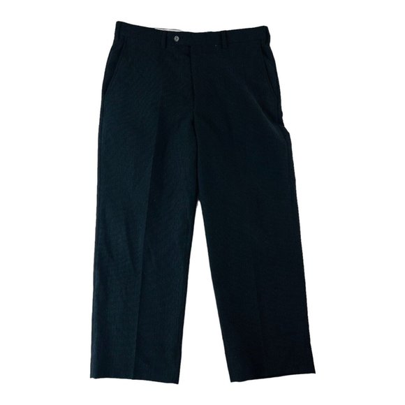 VTG St. Croix Black Flat Front Polyester Wool Corduroy Dress Pants 36X27 +2.5"