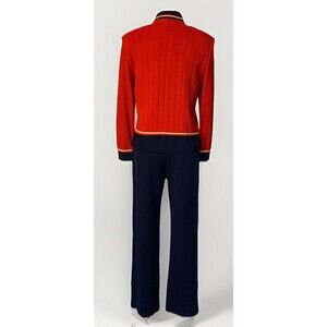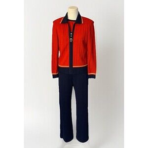 VTG St. John Collection Womens Small 3-Piece Knit Set Red Gold Navy Marie Gray