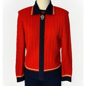 St. John Collection Womens Small 3-Piece Knit Set Red Gold Navy Marie Gray