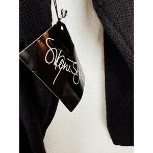 For sale is a wonderful vintage women's wool blend black new with tags 1980's St. John Knit long sleeved bodysuit with an attached scarf in a size medium.
