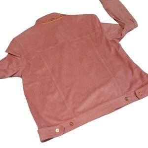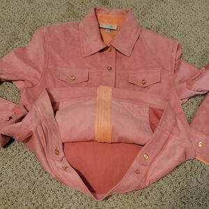 VTG St John Sport by Marie Faux Suede Button Jacket Gold Hardware Pink Orange
