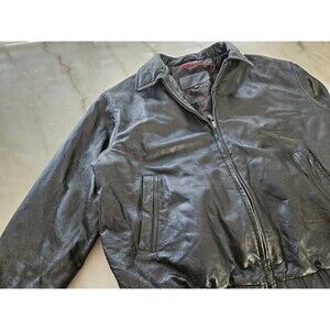 VTG St. Johns Bay Black Genuine Leather Bomber Jacket, Size XL, Vintage