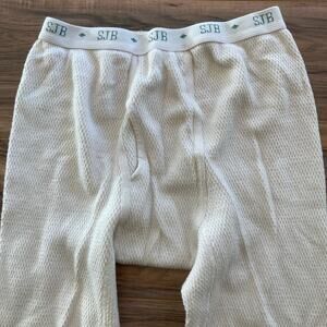 VTG St Johns Bay Thermal Under Wear Pant Bottoms Mens M Cream Cotton Waffle Knit Long Johns Base Layer Bottoms Pants Elastic Waistband Ribbed Cuffs SJB Logo Made in the USA