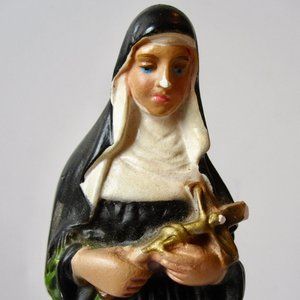 VTG St Rita Plaster Columbia Statue Figure Patron of Impossible Causes ITALY