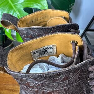 VTG Stacy Adams Tooled Leather Brogue Boots Men 7D Wmn 8.5 Paisley Floral 90s