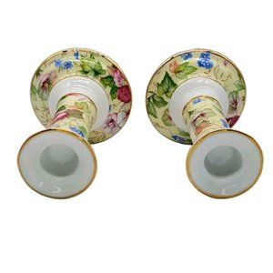 VTG Staffordshire Floral Chintz Candle Holders ENG