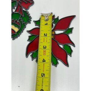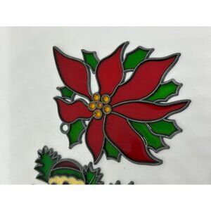 VTG Stained Glass Tiffany Style Sun Catcher Poinsettia Holly & Ornament USA ‘82