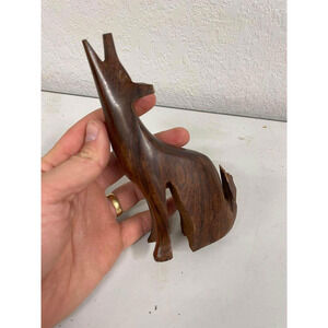VTG Stained Wood Carved Dog Coyote / Wolf Howling Statue Figure Home Decor READ