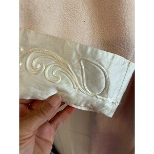 VTG Stan Herman Womens Soft fleece Pink Robe Embroidered Satin Trim Tradwife