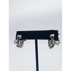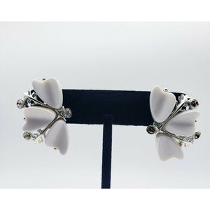 VTG Star Signed Latice White Butterfly Silver Tone W/ Crystals Clip On Earrings