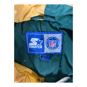 Step back into the iconic 1990s with this vintage Starter NFL Green Bay Packers jacket, a must-have for any true fan or collector! Crafted from durable materials, this XL jacket combines style and functionality, featuring a bold team logo and vibrant colors that make a statement on game day or during casual outings. Its comfortable fit and classic design ensure you stay warm while showing off your Packers pride, making it a timeless addition to your wardrobe that celebrates the spirit of football's golden era. Embrace nostalgia and elevate your style with this exceptional piece!