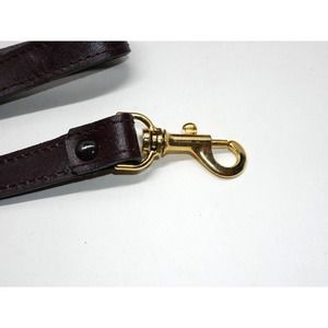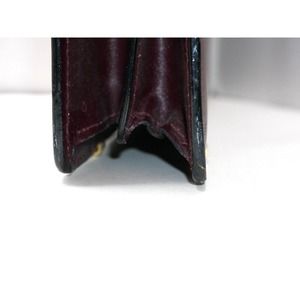 See photos for details. There is some wear due to age and storing. There are cracks in the glazing along the corners, some rub to the material on the inside, some tarnishing to the D-rings on the sides and seam separation near the tag due to missing thread. This wear can be seen in the pictures. Original shoulder strap is included. Original tags are still attached.