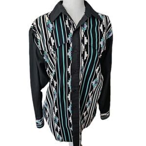 VTG Steer West Button Down Long Sleeve Aztec Shirt Made in USA Size L