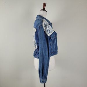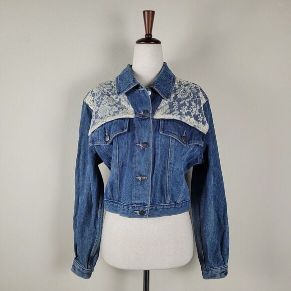 VTG Stefano International Jacket Small Blue Denim Lace Crop 90s Cottagecore